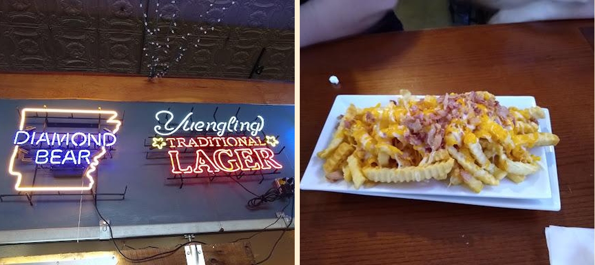 The must-try dishes include the Ribeye Chef's Choice and Pulled Pork Sandwich. Pair the meals with the delicious Tiger Bacon Cheese Fries. The BBQ Nachos are a perfect starter.
